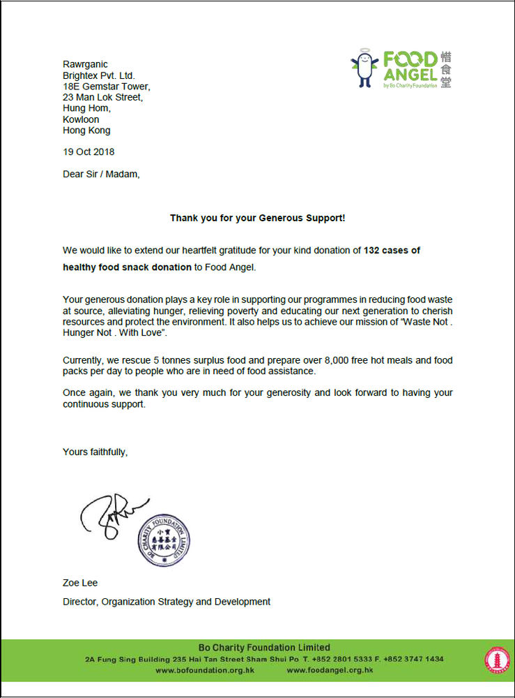 Donation To Food Angel By Bo Charity Foundation